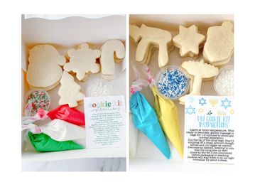 Each kit includes 12 cookies, 3 bags of royal icing, sprinkles, and DIY instructions.