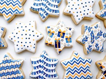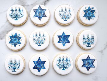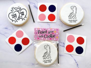 Custom design a set of cookies for birthday parties, bridal and baby showers, weddings, holidays, bar/bat mitzvahs, communions, corporate functions, realtor sales, and more! Minimum of one dozen required for custom orders. Classic Vanilla Sugar Cookies. (Additional $2 per dozen for Chocolate Sugar Cookies)
